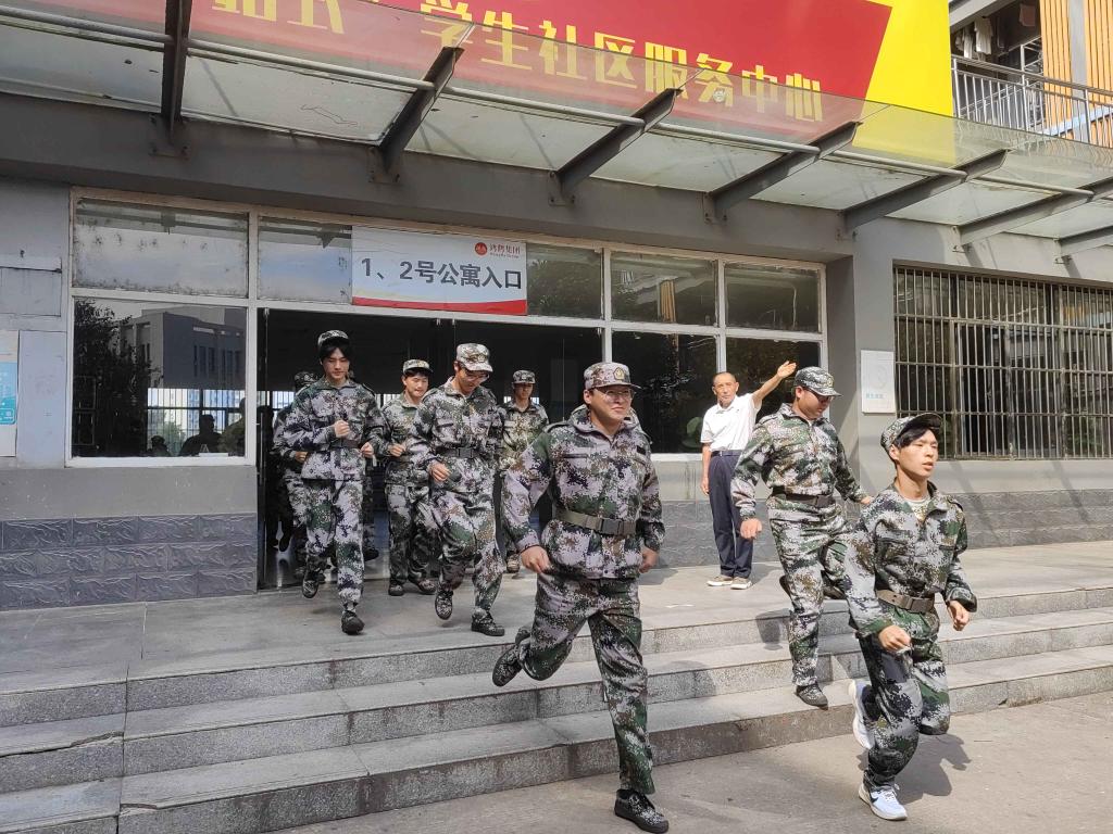 下午14:00分,警报骤然拉响。志愿消防服务队队员、宿舍管理人员赶赴现场指挥,14:03分,2500余名新生从指定的疏散路线撤离到校园安全地带后,各班清点人数并上报演习指挥部,未发生人员伤亡和缺员情况,演习顺利完成。整个过程紧张有序、实用性强,达到了预期效果。