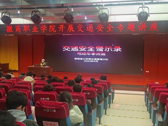 为进一步增强广大师生道路交通安全意识,预防道路交通安全事故的发生,12月14日,学院邀请肥西县交警中队警官在紫蓬校区开展道路交通安全主题讲座。