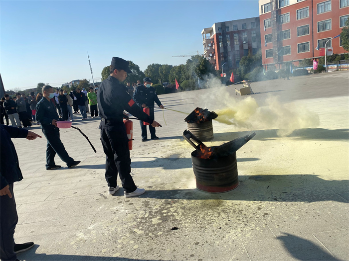 活动开始时,学院学生(保卫)处工作人员给大家讲解了灭火器的使用方法,本次演练使用的干粉灭火器要掌握"一提二拔三对准"的使用要领(一提:站在上风口方向提起干粉灭火器将其上下颠倒摇晃几次,使筒内的干粉松动;二拔:拔掉保险销,三对准:一手将喷头对准火源根部,一手握住压把喷射药粉灭火);在认真听讲及观摩后,学生们亲自体验了现场灭火的过程,面对熊熊燃烧的火堆,学生们表现的十分沉着,熟练地按照灭火的步骤和方法,将燃起的浓烟大火成功的迅速扑灭,做到了冷静沉着的面对突发现象,成功快速的扑灭大火的消防标准。