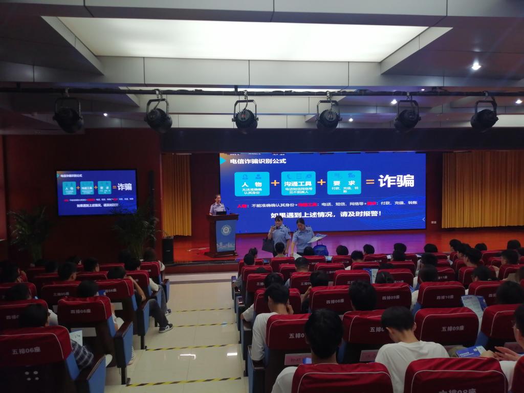 为切实提2025级新生的防诈反诈意识,帮助新生规避校园及社会常见诈骗风险,9月8日下午,我校举办2025级新生防范电信网络诈骗专题讲座,特邀肥西县公安局反诈中心主任张晓婉担任主讲,全体2025级新生及专兼职辅导员参加,讲座由安全管理处副处长郑峰敏主持。