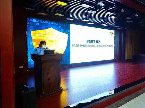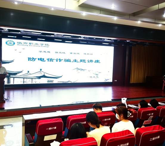 为进一步落实《安徽省学校安全生产专项领导小组办公室关于开展2023年全省教育系统“安全生产月”活动的通知》[皖学安办函(2023)6号]的文件精神和学院《徽商职业学院“无诈校园”建设工作实施方案》[徽院保函(2023年)5号]的方案要求,切实做好学院防范电信网络诈骗安全教育宣传工作,预防和减少电信诈骗案件的发生,5月30日下午15点50分,学院邀请肥西县公安局同圆社工事务所工作人员来校开展防范电信网络诈骗安全宣传讲座,讲座在紫蓬校区图文信息中心4楼学术报告厅进行。